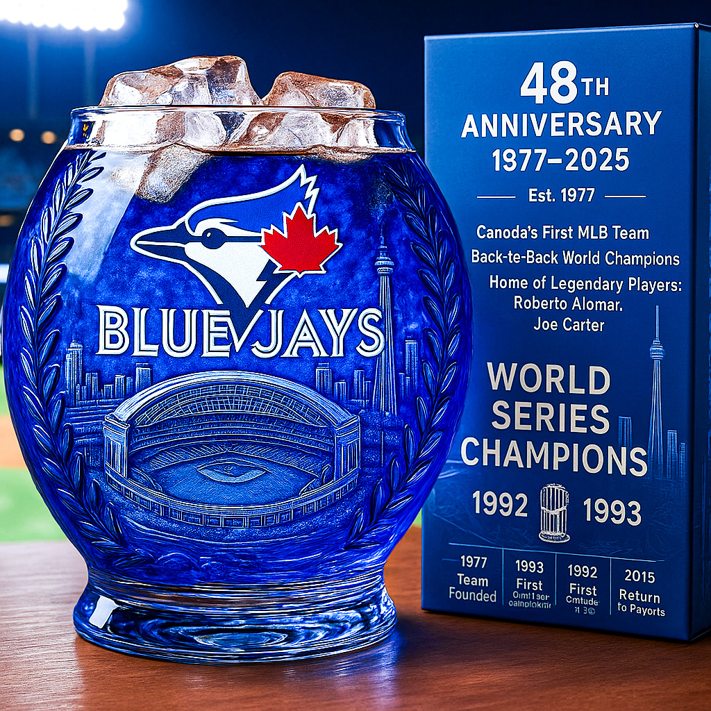 ⚾🎉Celebrate 48 years of Blue Jays baseball with a glass that embodies the pride of Canada’s team.